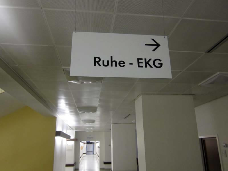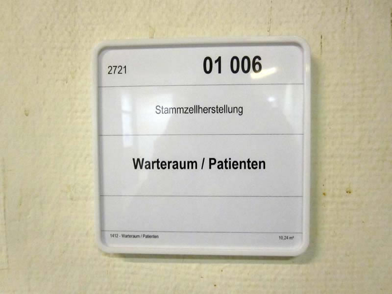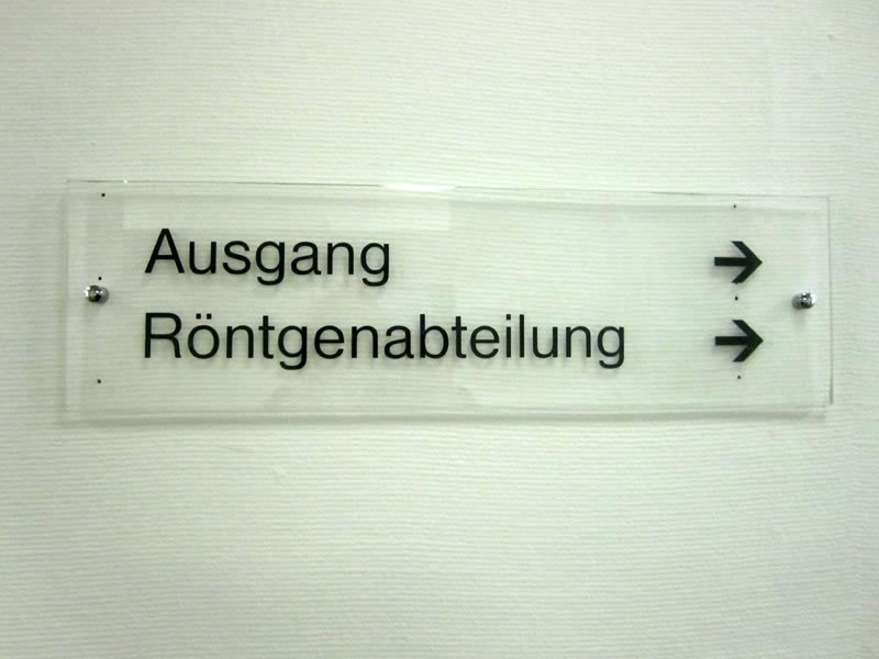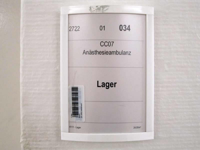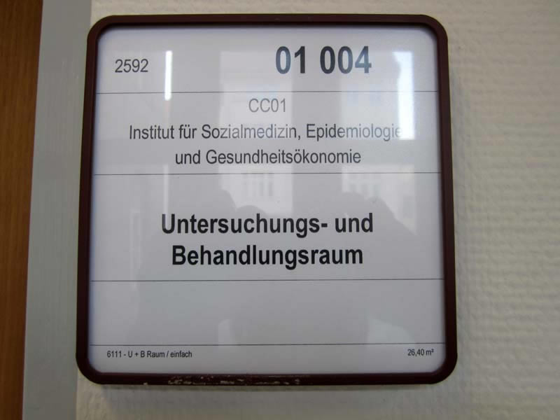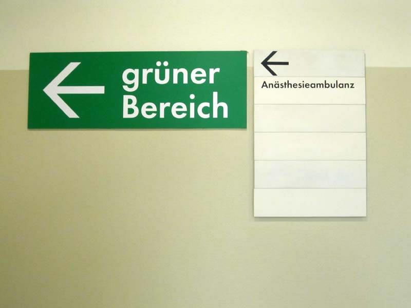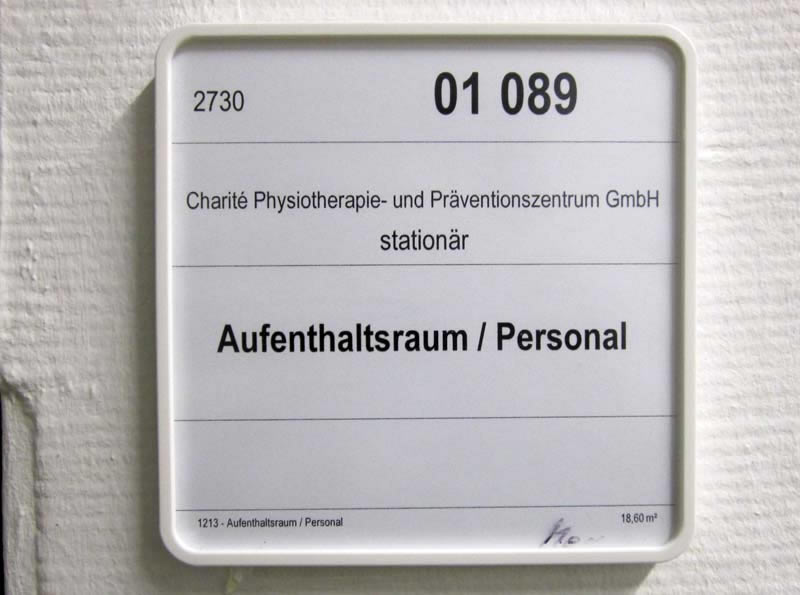 Signs, guide boards and door plates in a German hospital Charité Berlin