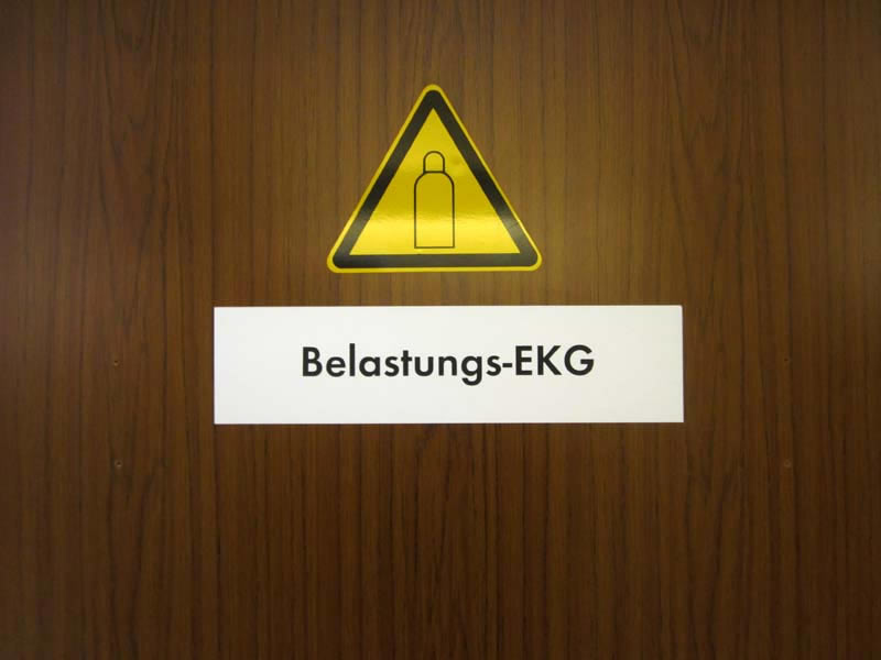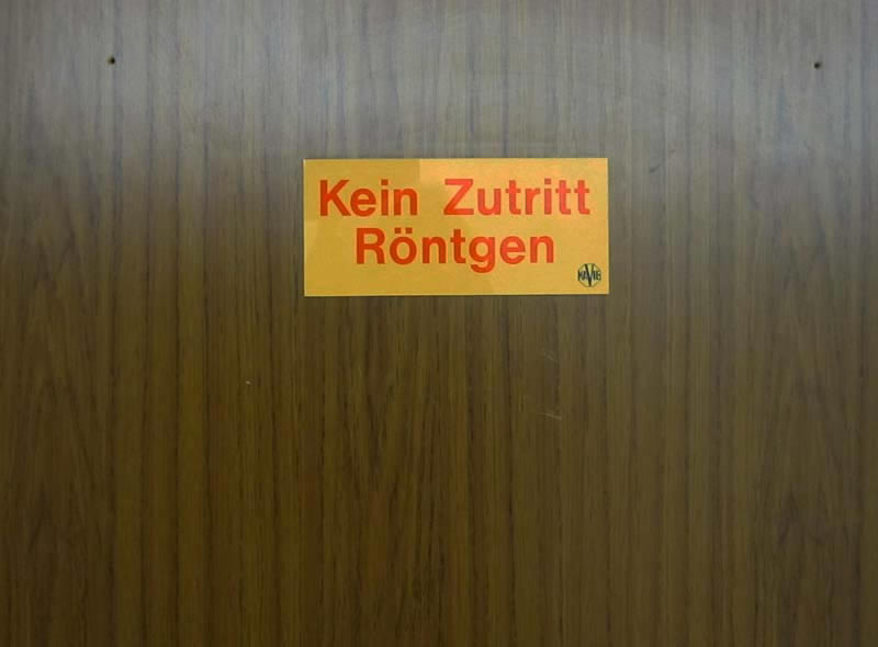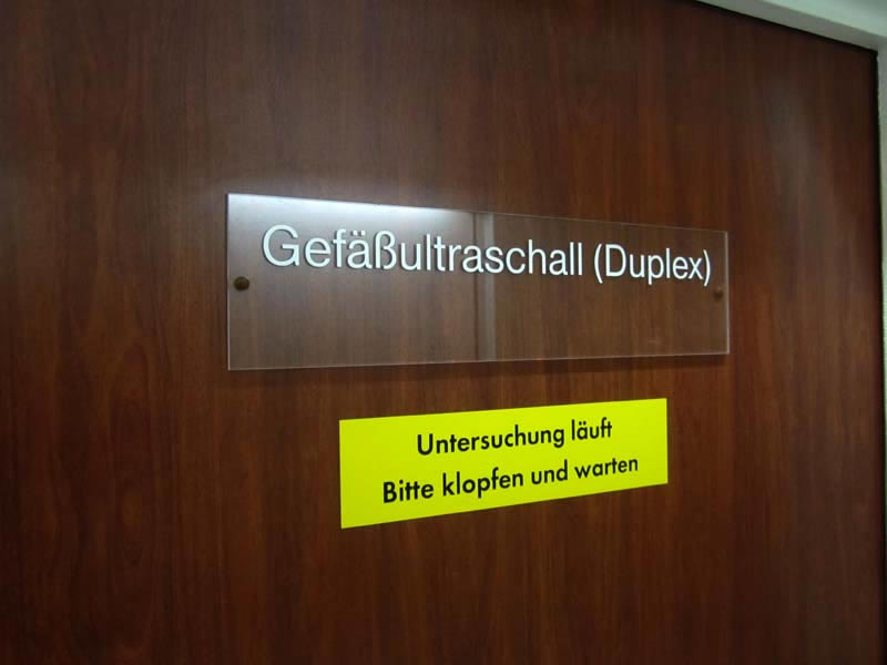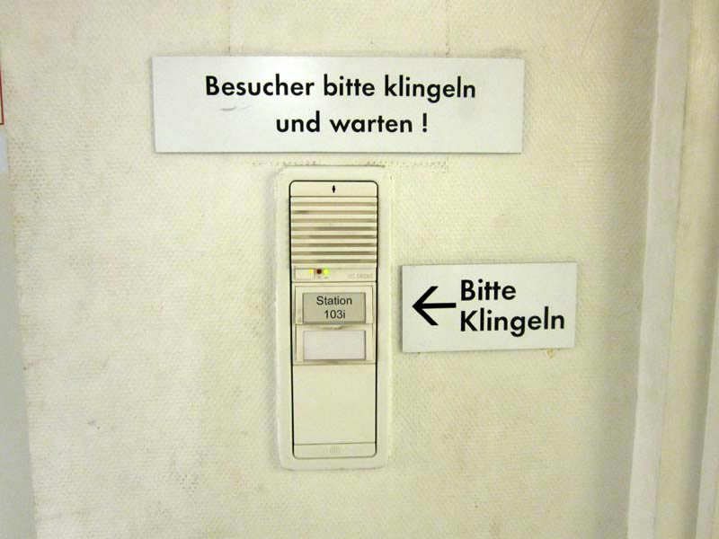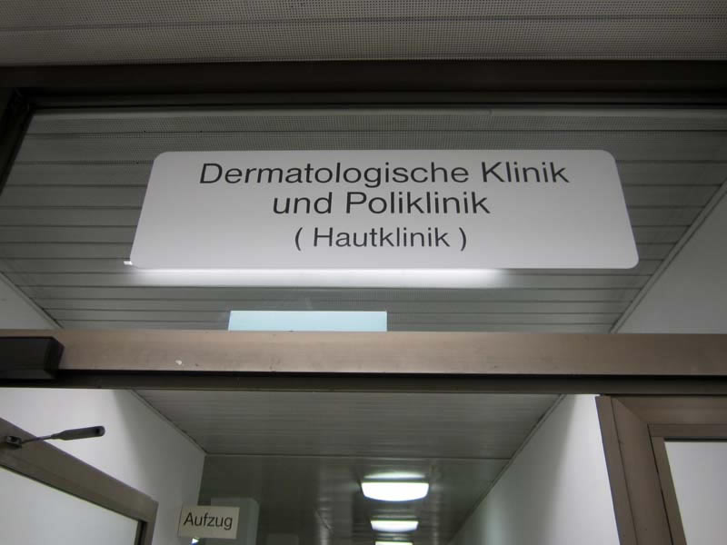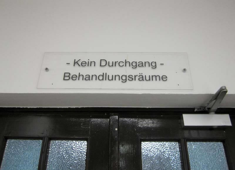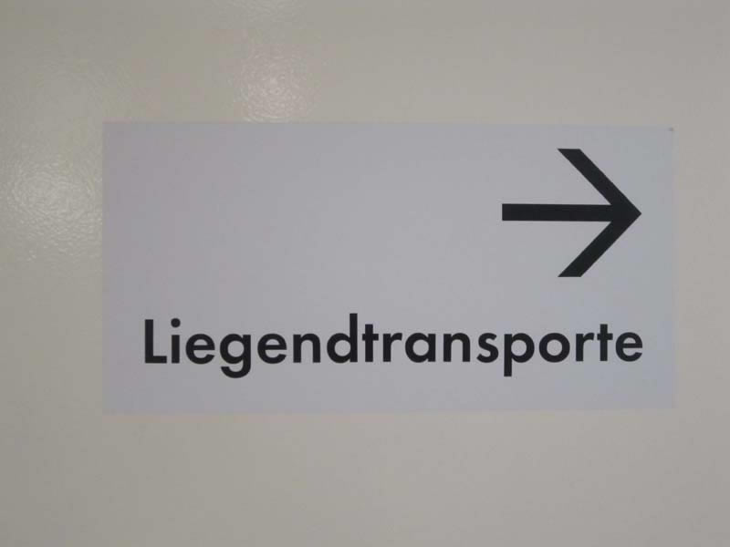 Signs, guide boards and door plates in a German hospital Charité Berlin